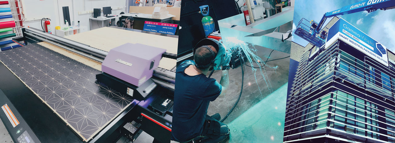 - Une imprimerie : offset et numérique, impression de flyers, dépliants, plaquettes commerciales, impression grand format, impression sur bâches et banderoles, ...